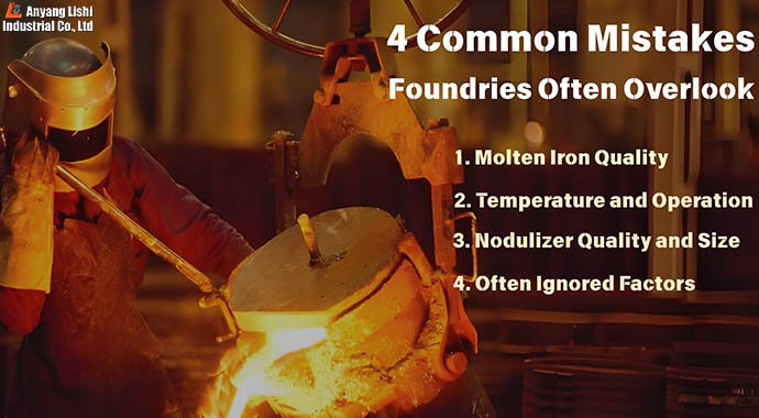 提前加入球化劑、鐵包潮濕或內(nèi)部不潔,都會造成鎂損失,導致結(jié)果不穩(wěn)定。